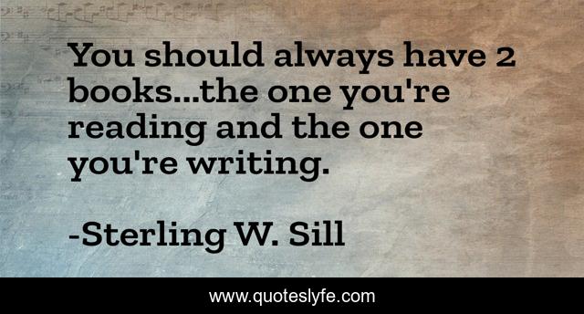 This page presents the quote "You should always have 2 books...the one you're reading and the one you're writing.". Author of this quote is Sterling W. Sill. .