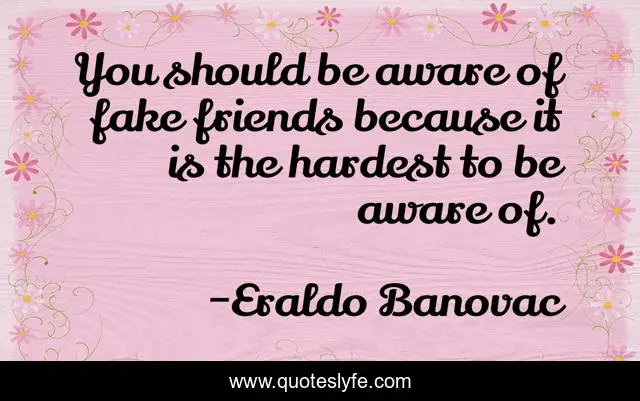 "Eraldo Banovac Quotes." Quoteslyfe.com, 2025. Mon. 08 Dec. 2025. <https://www.quoteslyfe.com/quote/You-should-be-aware-of-fake-friends-126694>.
