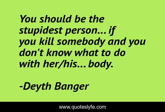This page presents the quote "You should be the stupidest person... if you kill somebody and you don't know what to do with her/his... body.". Author of this quote is Deyth Banger. This quote is about person, stupidest, stupid,.