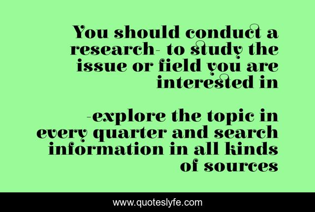 This page presents the quote "You should conduct a research- to study the issue or field you are interested in". Author of this quote is explore the topic in every quarter and search information in all kinds of sources. .