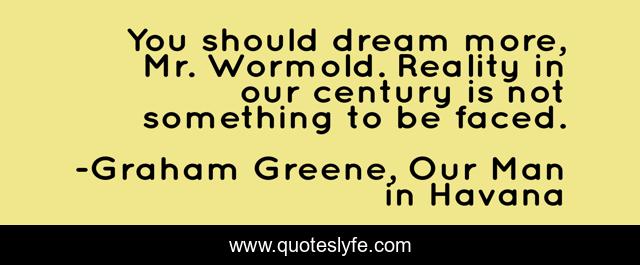 "Graham Greene, Our Man in Havana Quotes." Quoteslyfe.com, 2025. Sat. 06 Dec. 2025. <https://www.quoteslyfe.com/quote/You-should-dream-more-Mr-Wormold-Reality-93455>.