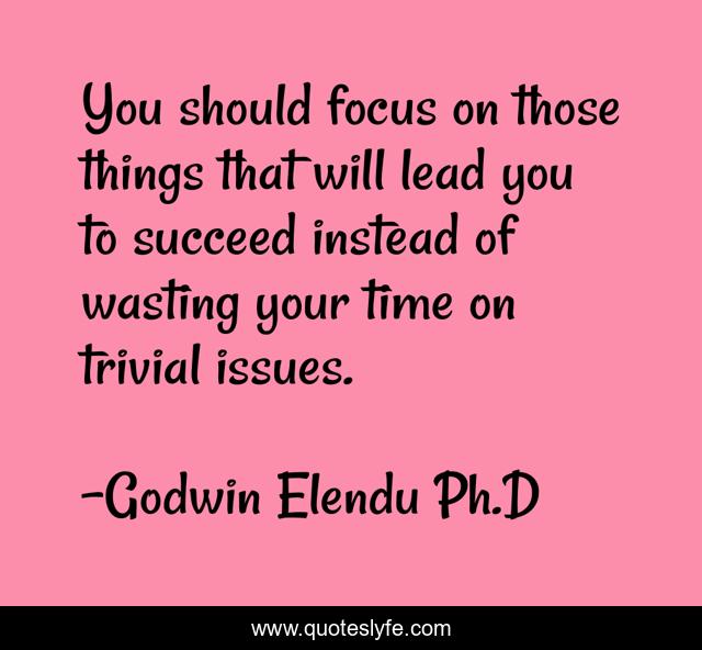 This page presents the quote "You should focus on those things that will lead you to succeed instead of wasting your time on trivial issues.". Author of this quote is Godwin Elendu Ph.D. This quote is about educational-philosophy, accomplishment, joyful-living, success-in-business, life-and-living, wealth,.