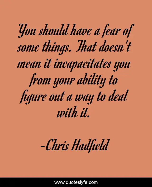This page presents the quote "You should have a fear of some things. That doesn't mean it incapacitates you from your ability to figure out a way to deal with it.". Author of this quote is Chris Hadfield. This quote is about way, mean,.