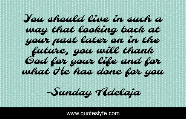 This page presents the quote "You should live in such a way that looking back at your past later on in the future, you will thank God for your life and for what He has done for you". Author of this quote is Sunday Adelaja. This quote is about past, god, life, future, thankfulness,.