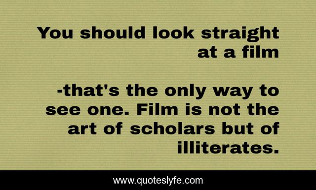 This page presents the quote "You should look straight at a film". Author of this quote is that's the only way to see one. Film is not the art of scholars but of illiterates.. .