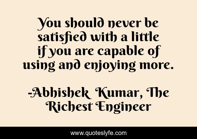 This page presents the quote "You should never be satisfied with a little if you are capable of using and enjoying more.". Author of this quote is Abhishek Kumar, The Richest Engineer. This quote is about confidence, wealth-creation, money, motivational, optimistic, inspirational, personal-finance, enthusiasm, positive,.