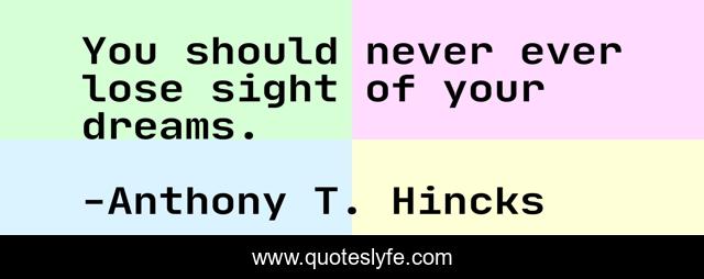 This page presents the quote "You should never ever lose sight of your dreams.". Author of this quote is Anthony T. Hincks. This quote is about life, lose-sight, philosophy, sight, lose, dreams,.