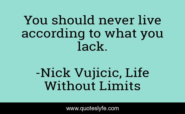 This page presents the quote "You should never live according to what you lack.". Author of this quote is Nick Vujicic, Life Without Limits. .