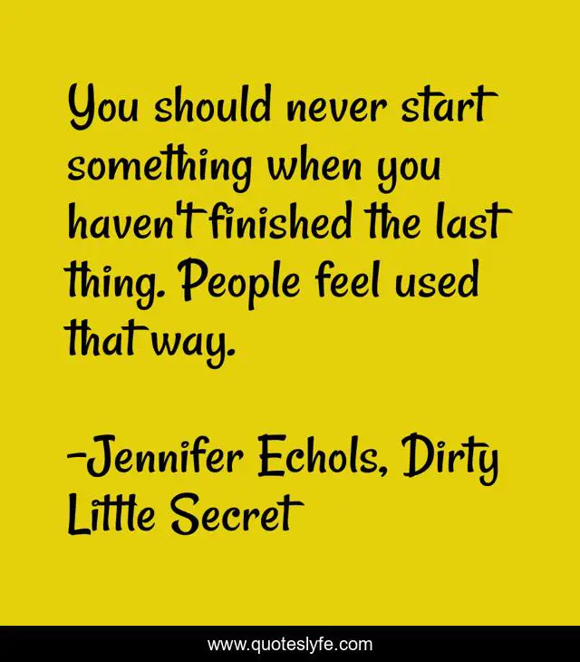 This page presents the quote "You should never start something when you haven't finished the last thing. People feel used that way.". Author of this quote is Jennifer Echols, Dirty Little Secret. This quote is about advice, remember,.