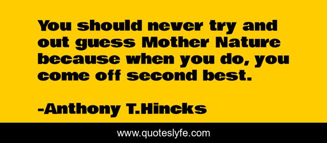 This page presents the quote "You should never try and out guess Mother Nature because when you do, you come off second best.". Author of this quote is Anthony T.Hincks. This quote is about guess, out-guess, philosophy, second-best, life, weather, mother-nature,.