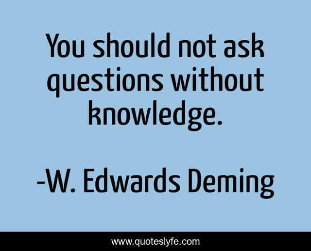 This page presents the quote "You should not ask questions without knowledge.". Author of this quote is W. Edwards Deming. This quote is about without, questions,.