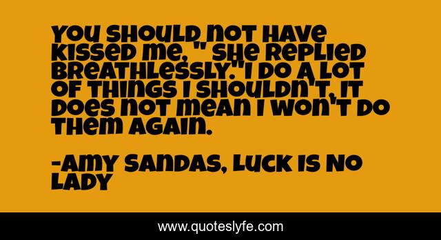 This page presents the quote "You should not have kissed me, " she replied breathlessly."I do a lot of things I shouldn't. It does not mean I won't do them again.". Author of this quote is Amy Sandas, Luck Is No Lady. This quote is about gambling, historical-romance,.