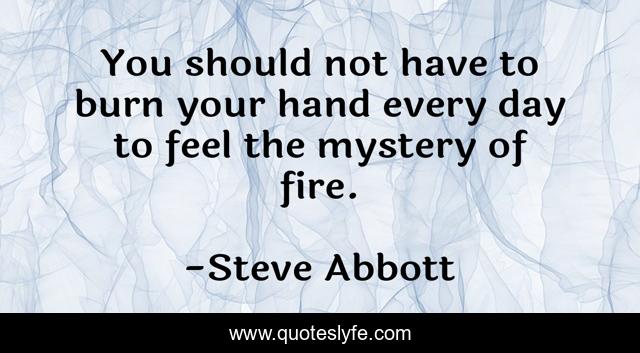 This page presents the quote "You should not have to burn your hand every day to feel the mystery of fire.". Author of this quote is Steve Abbott. This quote is about mystery, life, poetry, experience,.