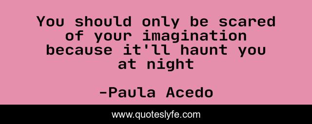 This page presents the quote "You should only be scared of your imagination because it'll haunt you at night". Author of this quote is Paula Acedo. This quote is about nightmares, imagination, scared, haunt,.