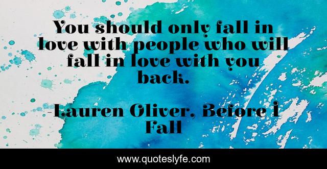 This page presents the quote "You should only fall in love with people who will fall in love with you back.". Author of this quote is Lauren Oliver, Before I Fall. This quote is about before-i-fall, young-adult,.
