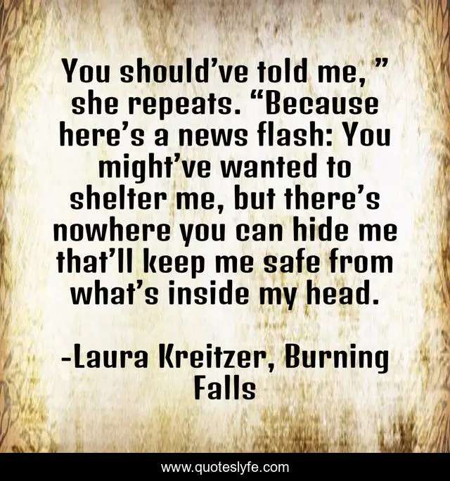 "Laura Kreitzer, Burning Falls Quotes." Quoteslyfe.com, 2025. Fri. 05 Dec. 2025. <https://www.quoteslyfe.com/quote/You-should-ve-told-me-she-repeats-148777>.