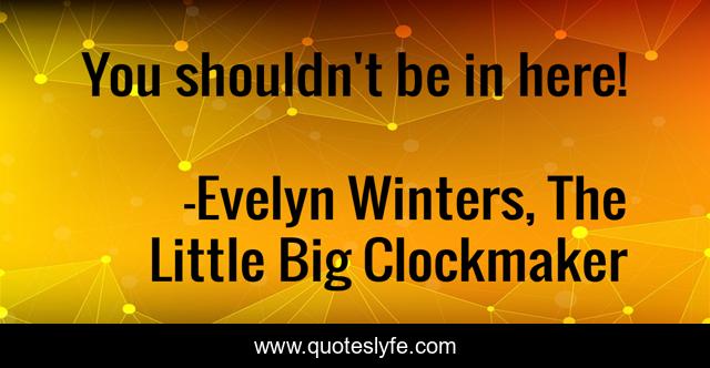 "Evelyn Winters, The Little Big Clockmaker Quotes." Quoteslyfe.com, 2025. Fri. 05 Dec. 2025. <https://www.quoteslyfe.com/quote/You-shouldn-t-be-in-here-100003>.