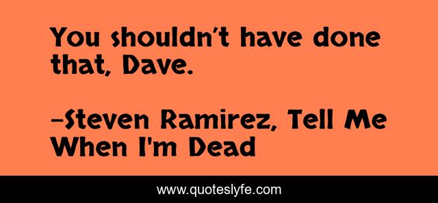 "Steven Ramirez, Tell Me When I'm Dead Quotes." Quoteslyfe.com, 2025. Fri. 05 Dec. 2025. <https://www.quoteslyfe.com/quote/You-shouldn-t-have-done-that-Dave-156449>.