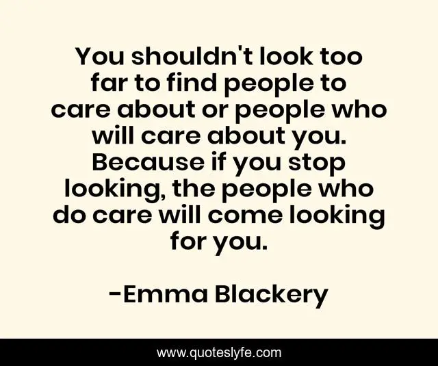 This page presents the quote "You shouldn't look too far to find people to care about or people who will care about you. Because if you stop looking, the people who do care will come looking for you.". Author of this quote is Emma Blackery. This quote is about people, youtube, inspirational, enthusiasm, happy, care,.