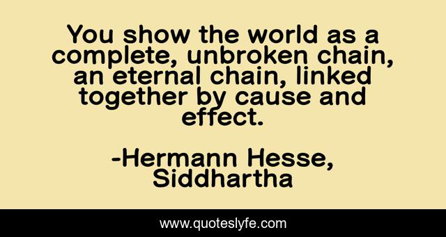 This page presents the quote "You show the world as a complete, unbroken chain, an eternal chain, linked together by cause and effect.". Author of this quote is Hermann Hesse, Siddhartha. This quote is about world, siddhartha, hesse, chain,.