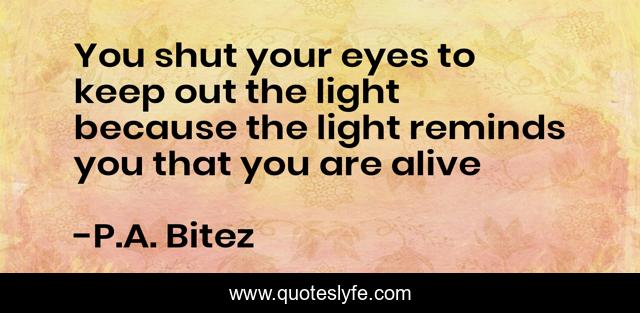 This page presents the quote "You shut your eyes to keep out the light because the light reminds you that you are alive". Author of this quote is P.A. Bitez. This quote is about angst, sadness, anxiety, depression,.