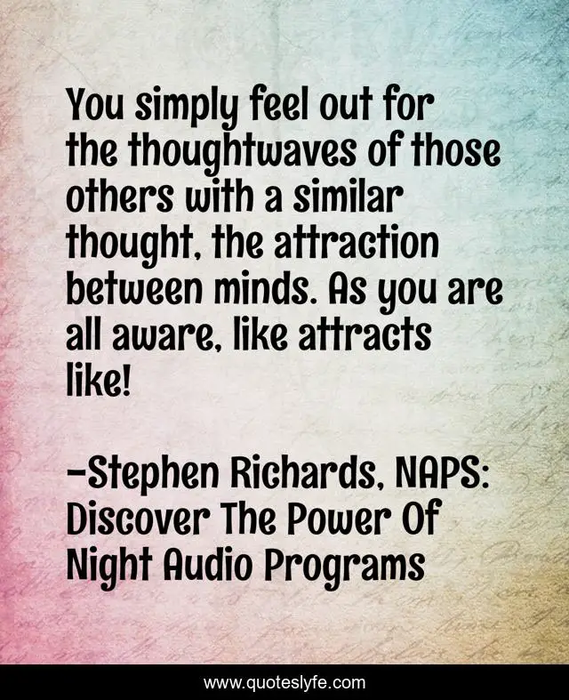 "Stephen Richards, NAPS: Discover The Power Of Night Audio Programs Quotes." Quoteslyfe.com, 2025. Mon. 08 Dec. 2025. <https://www.quoteslyfe.com/quote/You-simply-feel-out-for-the-thoughtwaves-159471>.