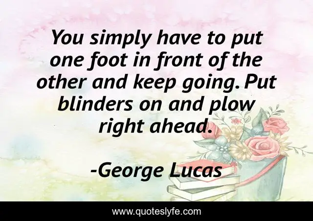 This page presents the quote "You simply have to put one foot in front of the other and keep going. Put blinders on and plow right ahead.". Author of this quote is George Lucas. This quote is about ahead, keep going,.