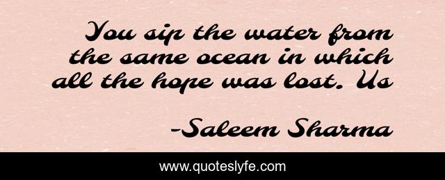 This page presents the quote "You sip the water from the same ocean in which all the hope was lost. Us". Author of this quote is Saleem Sharma. This quote is about life, humans, hope,.