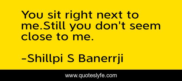 This page presents the quote "You sit right next to me.Still you don't seem close to me.". Author of this quote is Shillpi S Banerrji. This quote is about closer, love, public-speaking, goodreads-authors, strangers, stranger-than-fiction, haunting, trolls, friendship,.