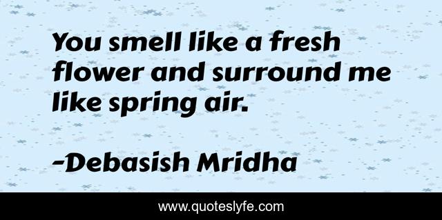 This page presents the quote "You smell like a fresh flower and surround me like spring air.". Author of this quote is Debasish Mridha. This quote is about spring-air, debasish-mridha, philosophy, smell-like-a-flower, quotes, debasish-mridha-md, inspirational, enthusiasm,.