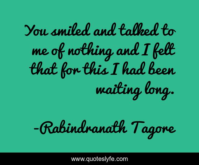 This page presents the quote "You smiled and talked to me of nothing and I felt that for this I had been waiting long.". Author of this quote is Rabindranath Tagore. This quote is about love, affection,.