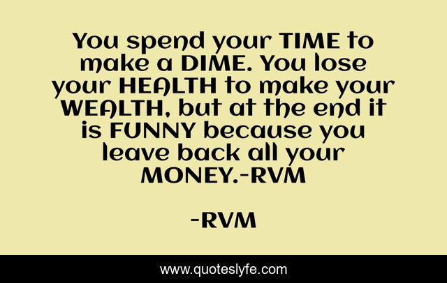 This page presents the quote "You spend your TIME to make a DIME. You lose your HEALTH to make your WEALTH, but at the end it is FUNNY because you leave back all your MONEY.-RVM". Author of this quote is RVM. This quote is about motivation, inspiration,.