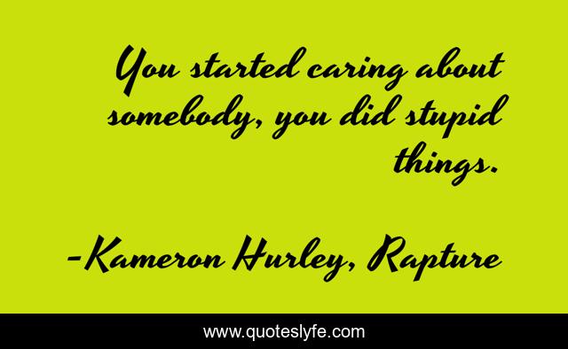 This page presents the quote "You started caring about somebody, you did stupid things.". Author of this quote is Kameron Hurley, Rapture. This quote is about caring, stupid, somebody,.