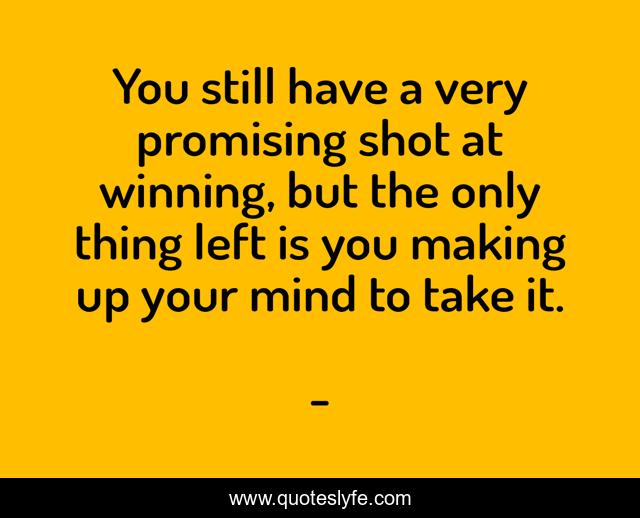 This page presents the quote "You still have a very promising shot at winning, but the only thing left is you making up your mind to take it.". Author of this quote is . This quote is about edmond-mbiaka, make-up-your-mind, take-a-shot-at-success, you-have-a-shot-at-winning, making-your-mind-up,.