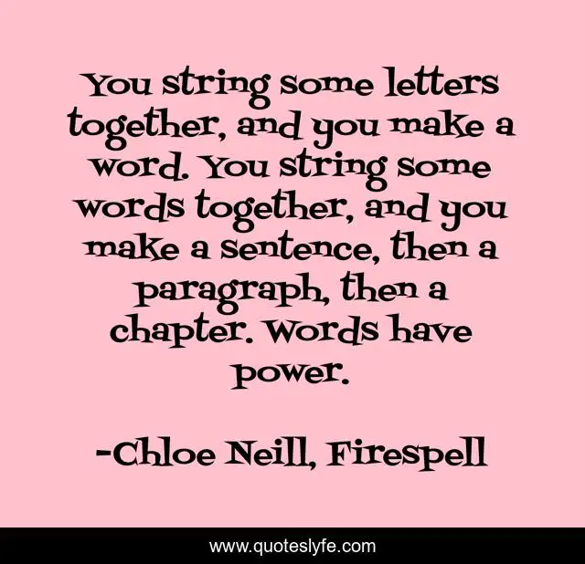 This page presents the quote "You string some letters together, and you make a word. You string some words together, and you make a sentence, then a paragraph, then a chapter. Words have power.". Author of this quote is Chloe Neill, Firespell. This quote is about power-of-words, words,.