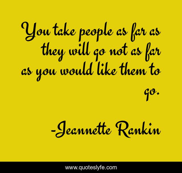 This page presents the quote "You take people as far as they will go not as far as you would like them to go.". Author of this quote is Jeannette Rankin. .