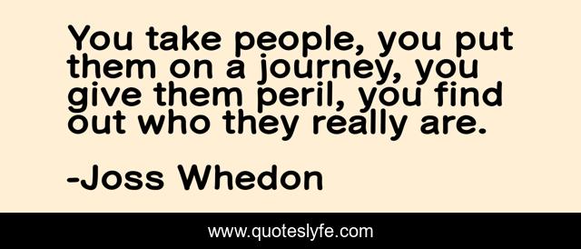 This page presents the quote "You take people, you put them on a journey, you give them peril, you find out who they really are.". Author of this quote is Joss Whedon. This quote is about characters, fiction-writing, human-nature, journey, truth, life-lessons,.