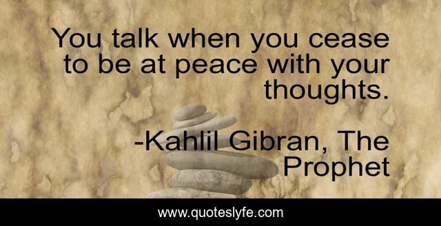 This page presents the quote "You talk when you cease to be at peace with your thoughts.". Author of this quote is Kahlil Gibran, The Prophet. This quote is about philosophy, poetry,.