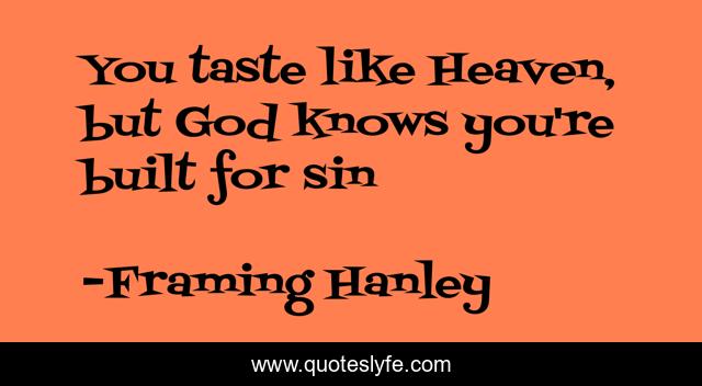 This page presents the quote "You taste like Heaven, but God knows you're built for sin". Author of this quote is Framing Hanley. .