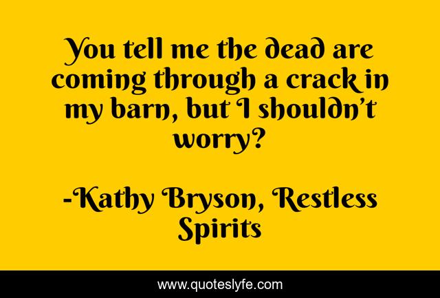 "Kathy Bryson, Restless Spirits Quotes." Quoteslyfe.com, 2025. Sat. 06 Dec. 2025. <https://www.quoteslyfe.com/quote/You-tell-me-the-dead-are-coming-236235>.