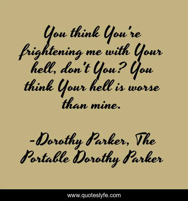 This page presents the quote "You think You're frightening me with Your hell, don't You? You think Your hell is worse than mine.". Author of this quote is Dorothy Parker, The Portable Dorothy Parker. .