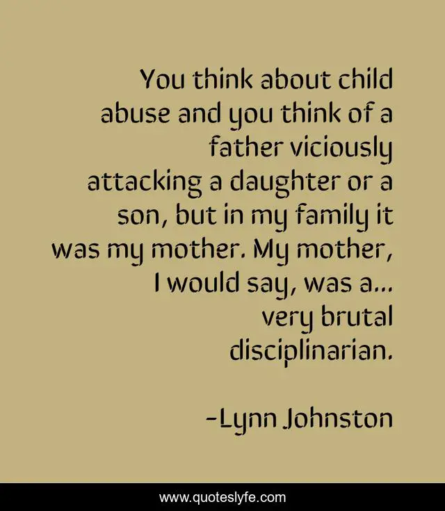 This page presents the quote "You think about child abuse and you think of a father viciously attacking a daughter or a son, but in my family it was my mother. My mother, I would say, was a... very brutal disciplinarian.". Author of this quote is Lynn Johnston. This quote is about father, daughter, mother,.