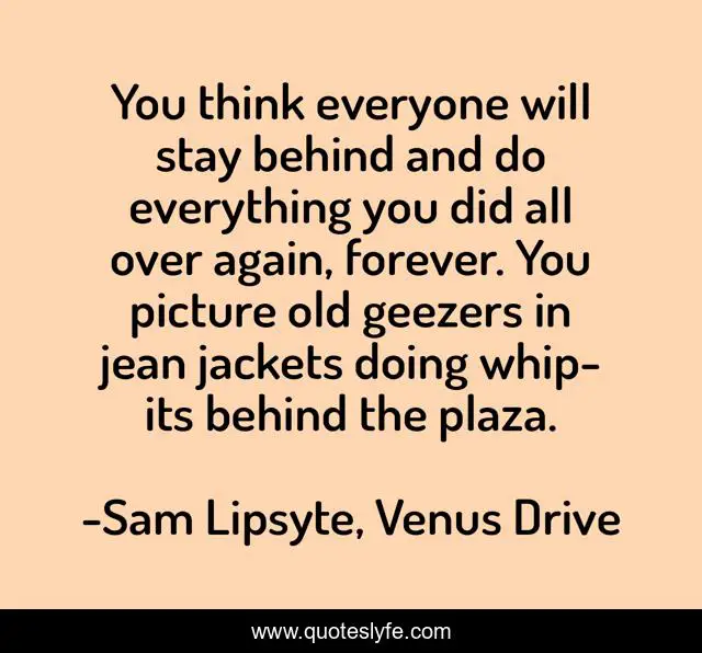 "Sam Lipsyte, Venus Drive Quotes." Quoteslyfe.com, 2025. Fri. 05 Dec. 2025. <https://www.quoteslyfe.com/quote/You-think-everyone-will-stay-behind-and-203674>.