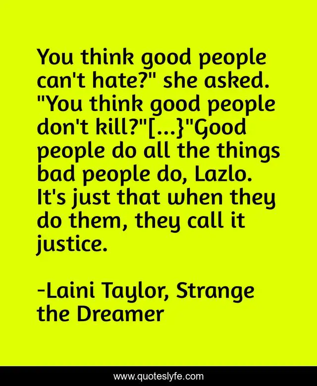 "Laini Taylor, Strange the Dreamer Quotes." Quoteslyfe.com, 2025. Mon. 08 Dec. 2025. <https://www.quoteslyfe.com/quote/You-think-good-people-can-t-hate-163394>.