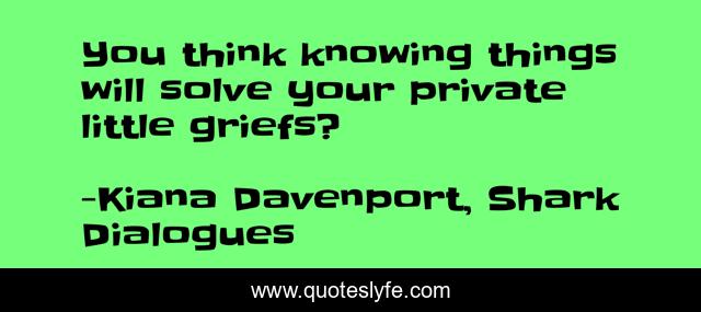 This page presents the quote "You think knowing things will solve your private little griefs?". Author of this quote is Kiana Davenport, Shark Dialogues. This quote is about grief, knowing, privacy,.