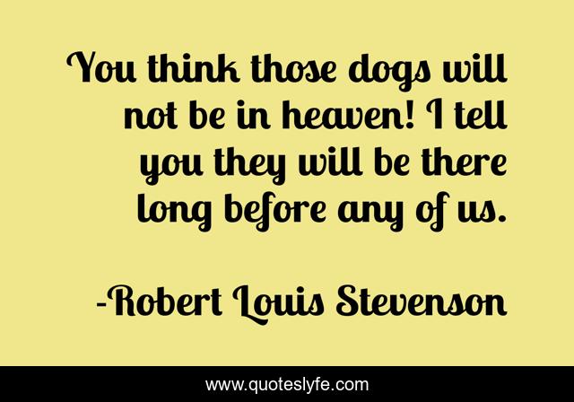 This page presents the quote "You think those dogs will not be in heaven! I tell you they will be there long before any of us.". Author of this quote is Robert Louis Stevenson. This quote is about animals, dogs,.