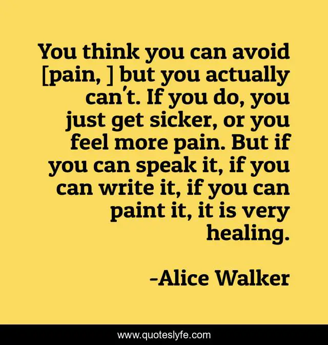This page presents the quote "You think you can avoid [pain, ] but you actually can't. If you do, you just get sicker, or you feel more pain. But if you can speak it, if you can write it, if you can paint it, it is very healing.". Author of this quote is Alice Walker. This quote is about pain, healing,.