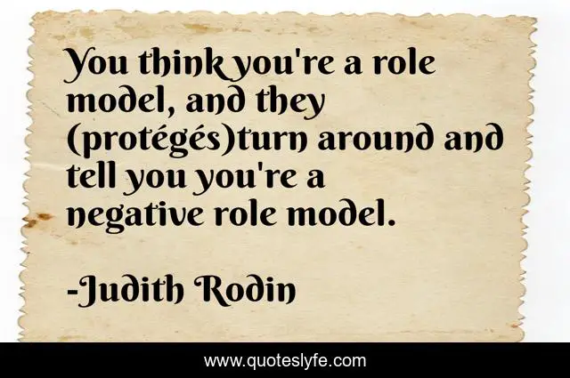 This page presents the quote "You think you're a role model, and they (protégés)turn around and tell you you're a negative role model.". Author of this quote is Judith Rodin. This quote is about discipleship, education, mentori,.