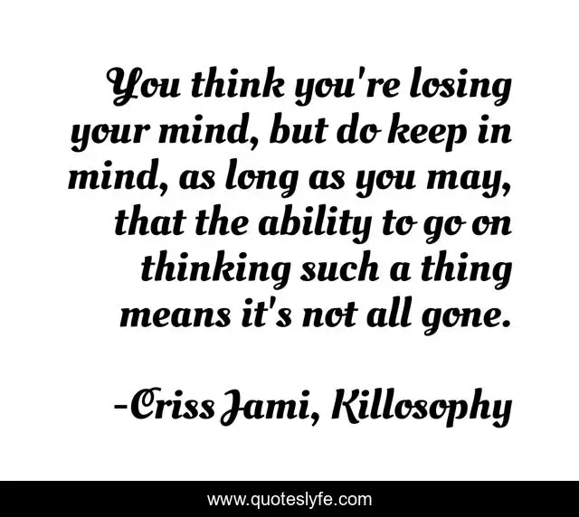 "Criss Jami, Killosophy Quotes." Quoteslyfe.com, 2025. Mon. 08 Dec. 2025. <https://www.quoteslyfe.com/quote/You-think-you-re-losing-your-mind-87596>.
