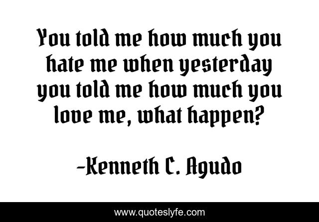 "Kenneth C. Agudo Quotes." Quoteslyfe.com, 2025. Mon. 08 Dec. 2025. <https://www.quoteslyfe.com/quote/You-told-me-how-much-you-hate-159902>.
